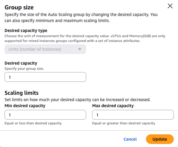 - Desired capacity: 0